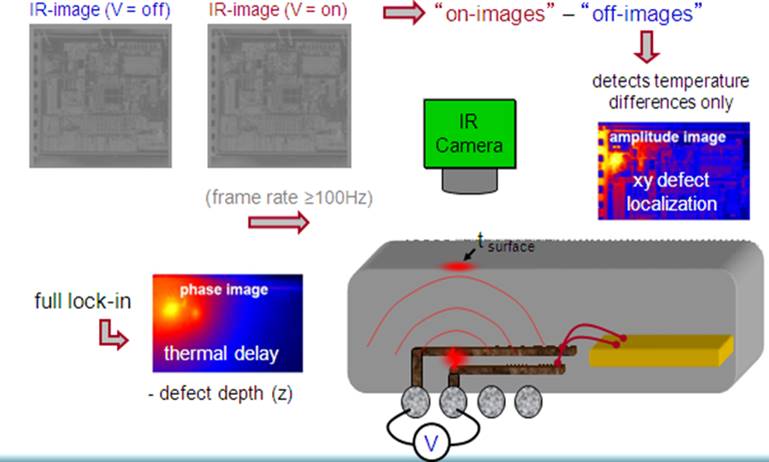 缺陷或功能异常的半导体元件通常会因为局部功率消耗的异常导致温度升高,ELITE系统利用Lock-in IR Thermography (LIT)其中的InSb材质的侦测器来准确并有效地定位这些异常的区域。