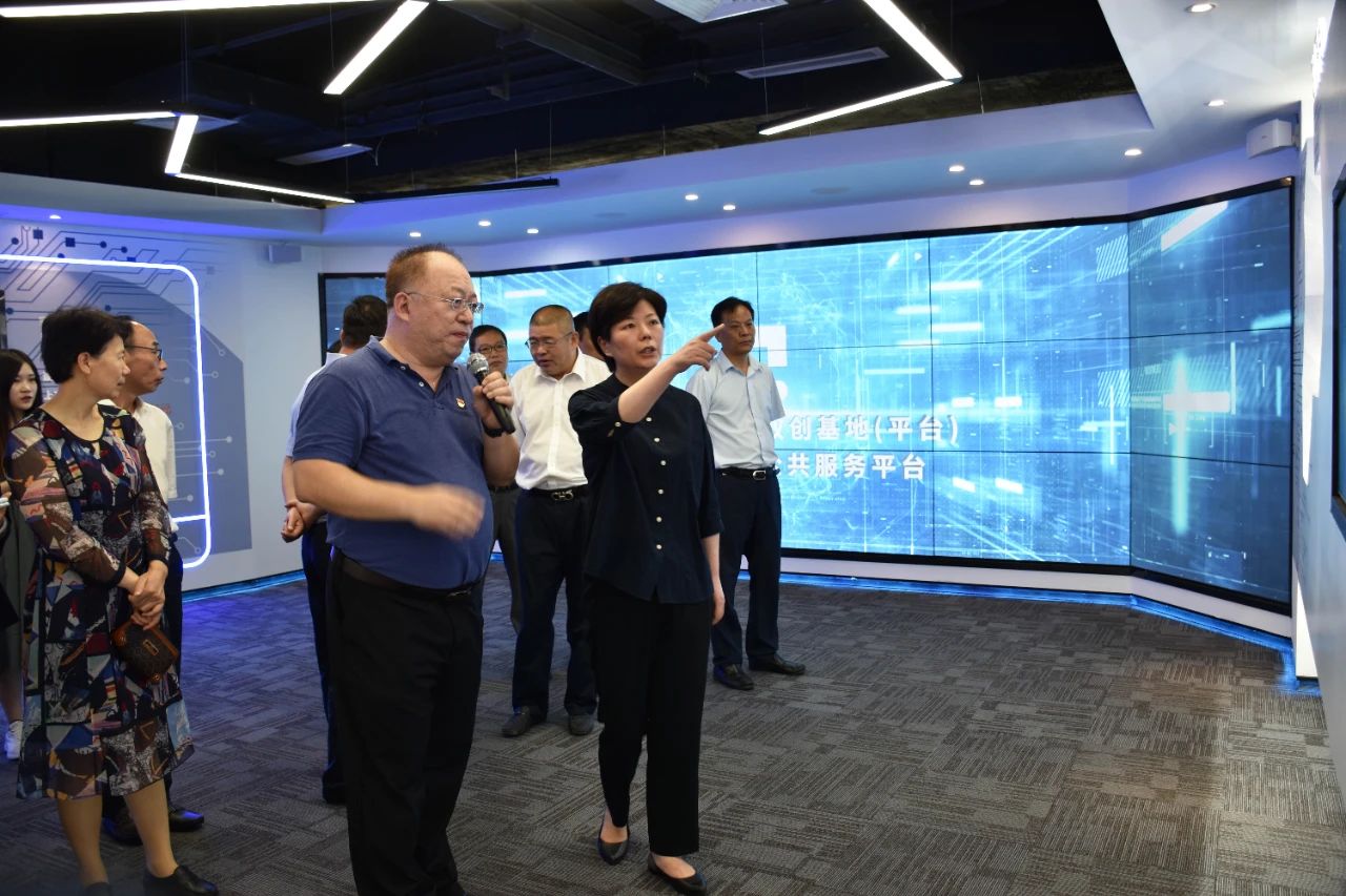 8月4日,无锡市副市长、高新区党工委书记、新吴区委书记蒋敏率区委一届十次全会重大项目观摩组现场观摩江苏产研院智能集成电路设计技术研究所。