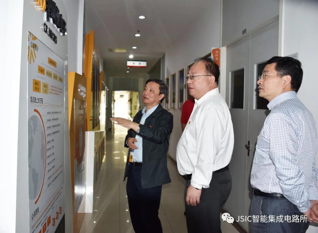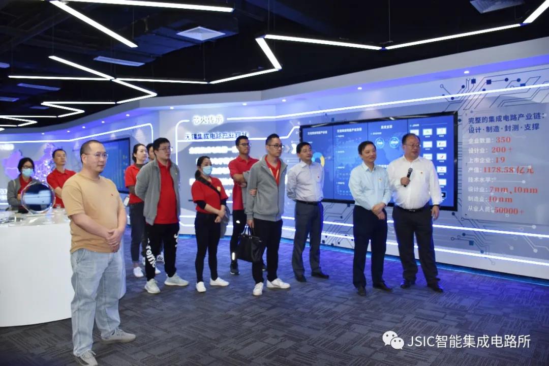 17日下午,华润微电子代工事业群来到智能集成电路所参观交流。在樊晓华所长的带领下,苏巍总经理一行首先参观了位于研究所的无锡国家“芯火”双创基地(平台)展厅。