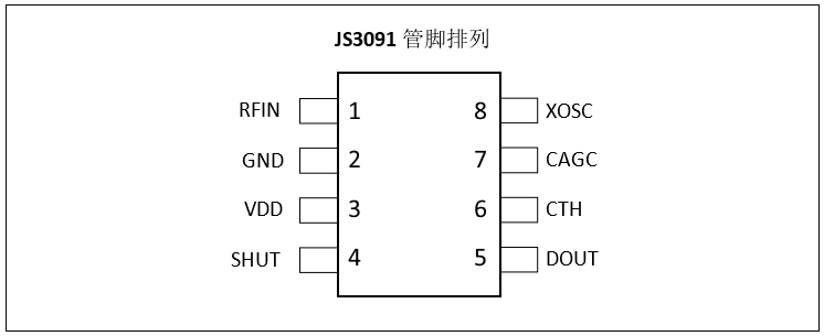 JS3091芯片是SOP-8封装,管脚定义分别如下图所示: