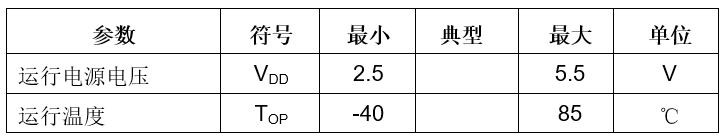 2.5 – 5.5 V电源输入 |