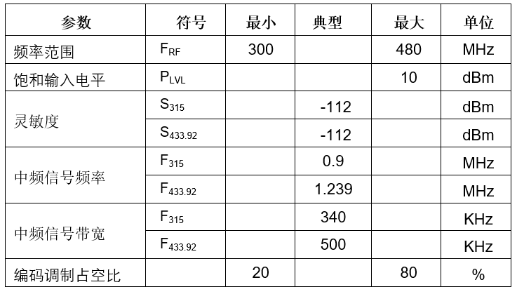 中频信号经过峰值检测器和低通滤波器之后完成调制信号的包络解调,剪波电平电路外接合适的数据滤波电容(CTH)将解调出的包络信号变为稳定的包络中间电平信号,再与包络信号进行比较而输出准确的解调数据,完成解码功能。