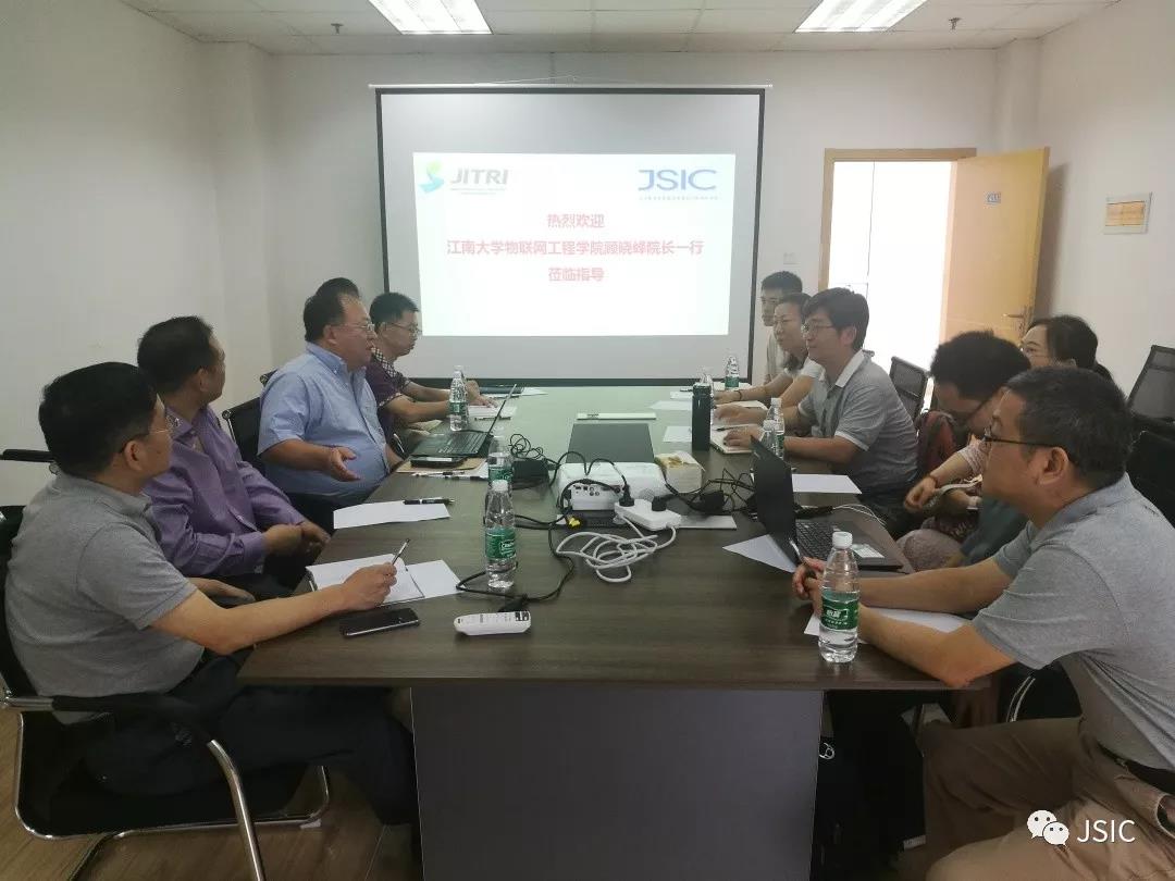 2019年8月29日上午,江南大学物联网工程学院顾晓峰教授一行来访江苏省产业技术研究院智能集成电路设计技术研究所(以下简称“研究所”),所长樊晓华,副所长周健军、阮昊及核心技术团队接待顾晓峰一行并进行了座谈交流。
